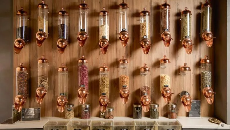 Elixir ofrece cinco variedades de yerba mate para los amantes del mate tradicional y para quienes buscan sabores innovadores. Para quienes buscan experiencias nuevas, también en el local se puede conseguir blends gourmet, que son mezclas de frutas y hierbas que se pueden agregar a la yerba para potenciar su sabor y beneficios. Entre los favoritos del público se encuentra una combinación de coco, banana, papaya y cúrcuma, y otro blend que incluye rosas, frutillas y piña. “La gente puede personalizar su mate con estos ingredientes naturales, sumando tanto sabor como beneficios para la salud”, explicó Degiglio.