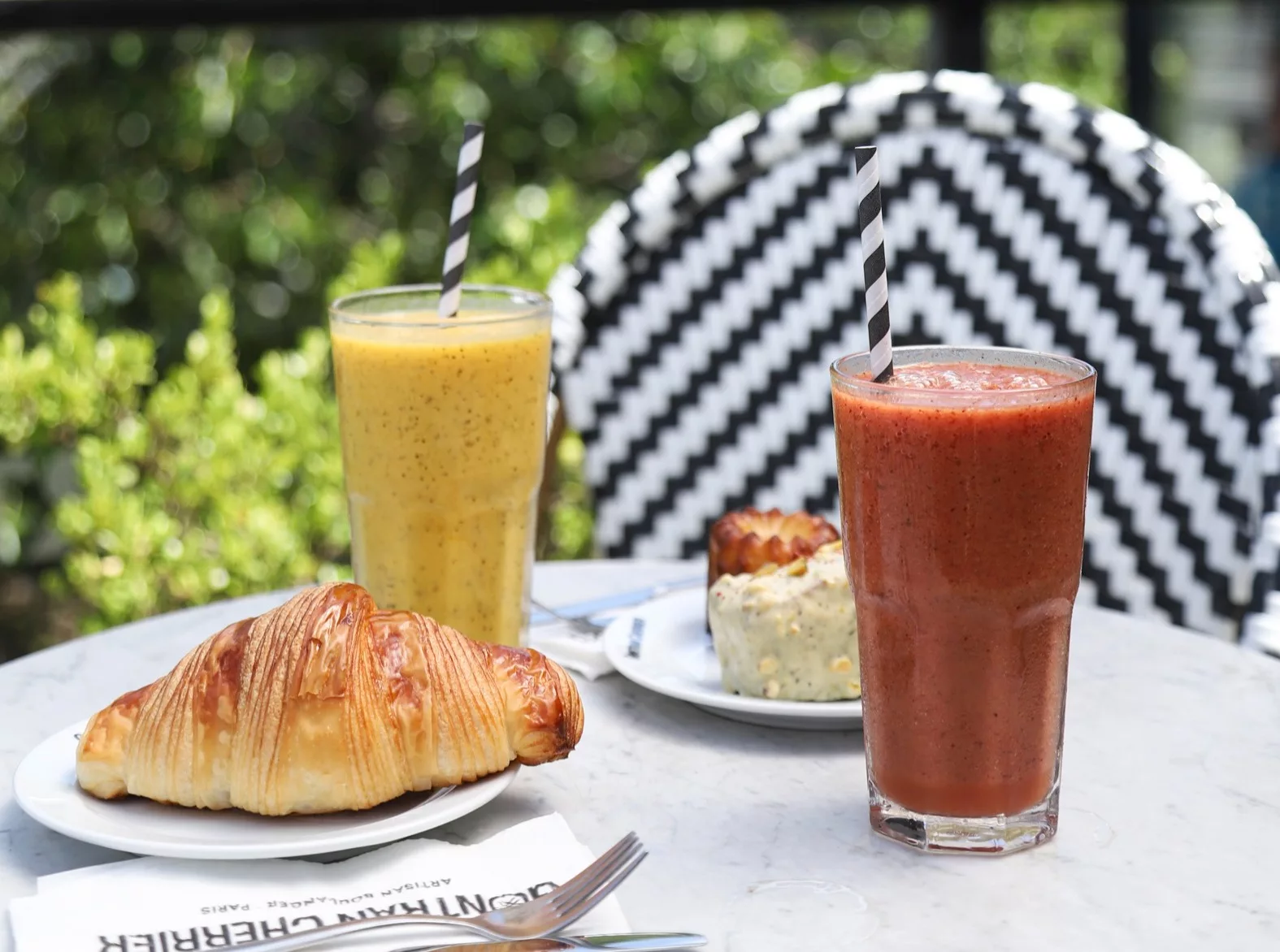 Cabe señalar que Gontran Cherrier ha incorporado un brunch francés para compartir, disponible los sábados y los domingos de 9 a 12. Con un valor de $39 900, incluye dos panes de queso, 1 croissant, 1 patisserie del día (cheesecake, tartelette citron, tartelette de fruta o domo de maracuyá), 2 mini tartine de palta, huevos revueltos con tostadas y mix de verdes; 2 vasos de yogur, granola y frutas de estación; 2 bagel con trucha, queso crema y ciboulette, 2 vasos de jugo de naranja, 2 infusiones y 2 Aperol. dispone de un menú ejecutivo desde $11 500, disponible de lunes a viernes de 12 a 15, que cuenta con un plato principal y postre.